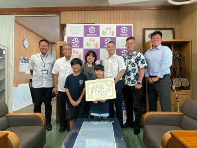 優勝旗を寄贈 八重山毎日新聞社